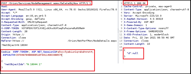 url = "http://SERVER:PORT/orion/Services/NodeManagement.asmx/DeleteObjNow" # Replace SERVER by the IP or DNS of your Orion SolarWinds plateform