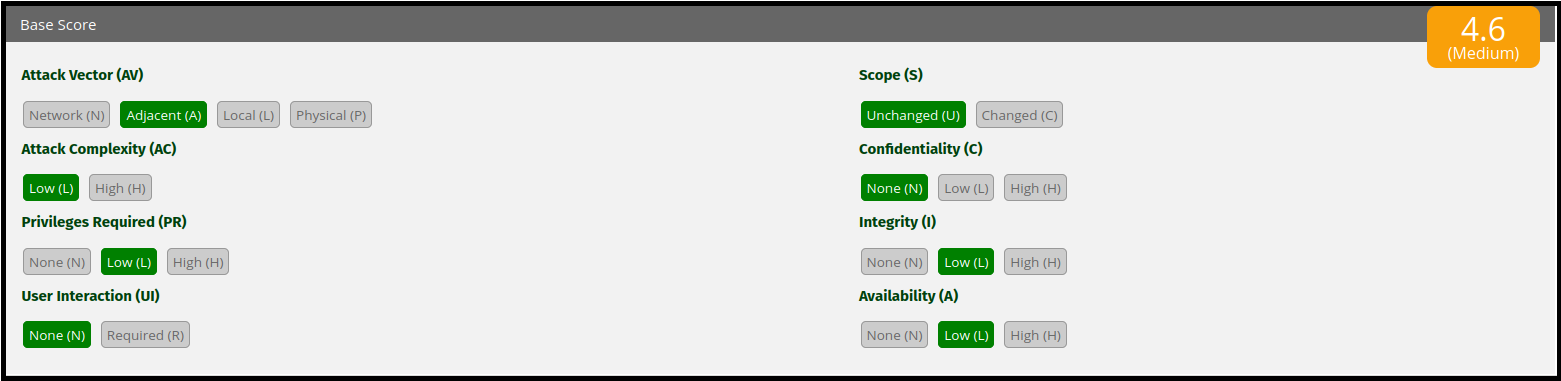 Nous avons décidé de lui attribuer le score CVSS de 4,6 qui en fait une vulnérabilité de criticité moyenne :