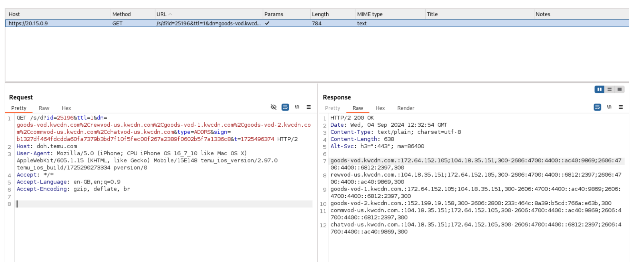 Une autre constatation technique pertinente concerne la manière dont Temu gère le trafic réseau, en particulier la résolution des noms de domaine. L’analyse révèle que l’application intègre un mécanisme optionnel permettant le recours à un serveur DNS personnalisé :